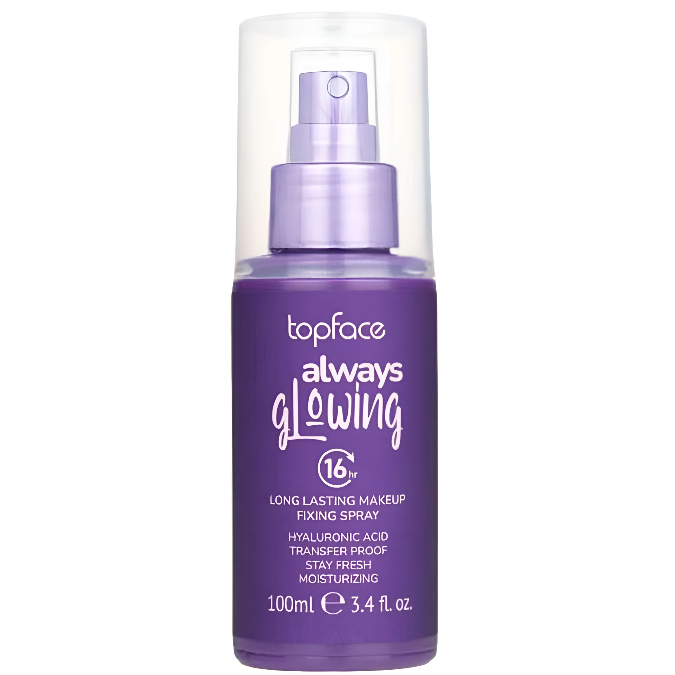 اسپری تثبیت‌ کننده آرایش تاپ‌ فیس مدل GLOWING یک لایه محافظ سبک و نامرئی بر روی آرایش ایجاد می‌کند تا آرایش در طول روز کاملاً ثابت و درخشان باقی بماند. این اسپری با فرمول غنی‌شده از اسید هیالورونیک پوست را هم‌زمان آبرسانی کرده و از خشکی یا ماسیدگی آرایش جلوگیری می‌کند. ترکیب منحصربه‌فرد آن کمک می‌کند تا آرایش تازه و طبیعی دیده شود، درخشش سالم و جذابی به پوست بدهد و تا ۱۶ ساعت ظاهری بی‌نقص را حفظ کند.